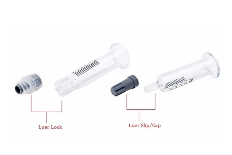 · The syringe barrel comes equipped with either a Luer Lock or Luer Slip tip cap.