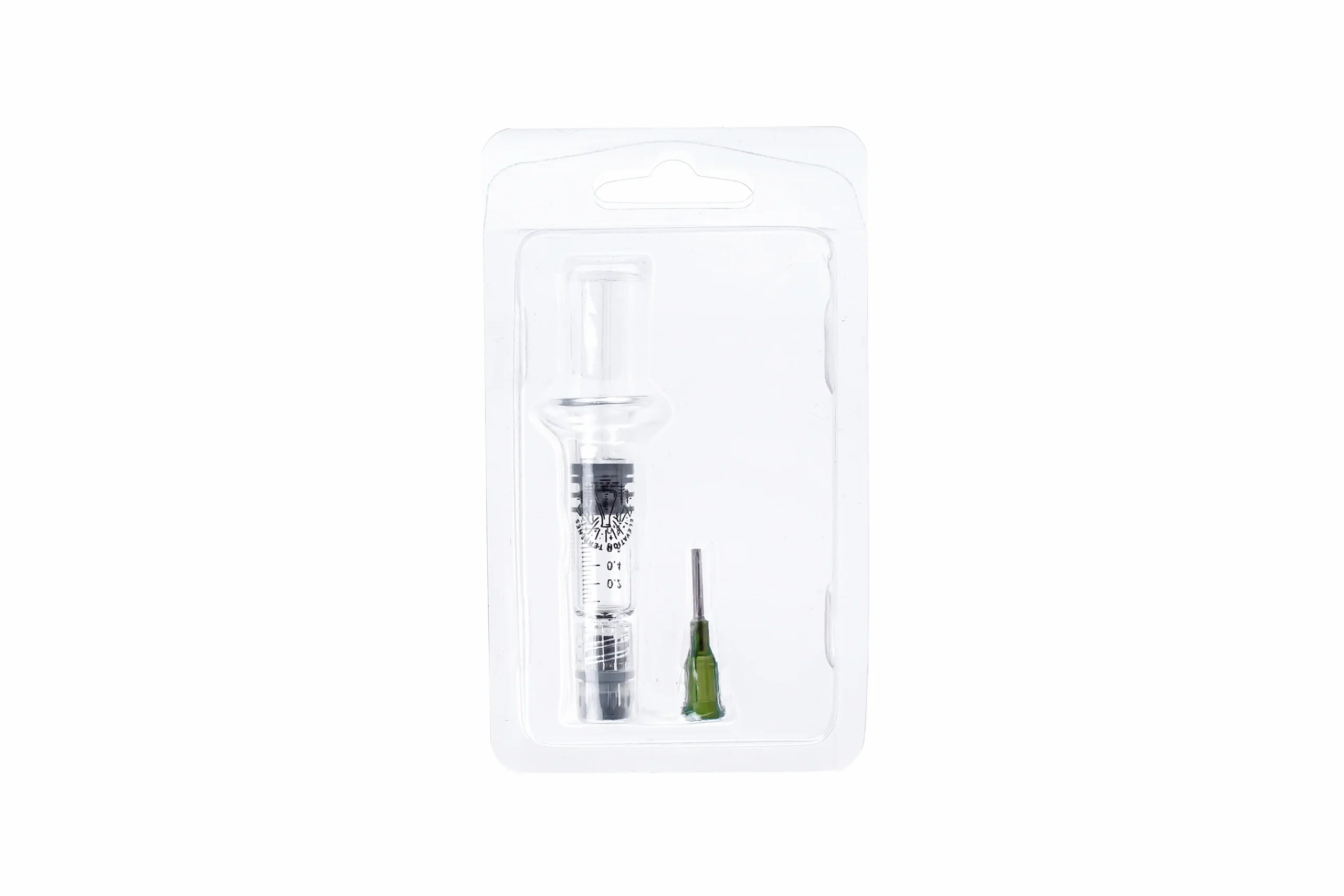 Ideal as a syringe for distillate, a dab syringe, or for oil syringe for cartridge applications, with options for precise and mess-free dispensing.